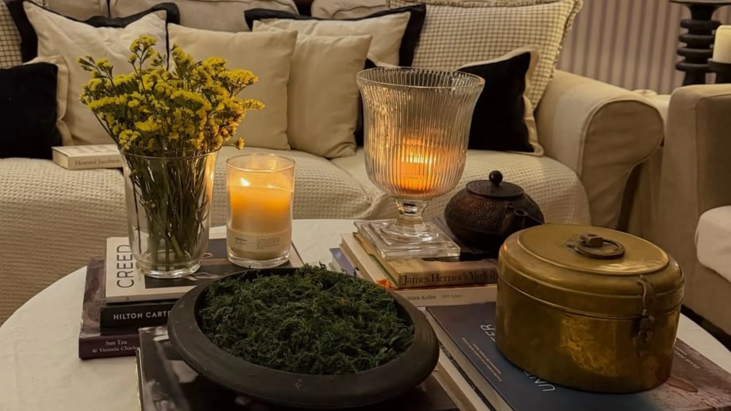 Heykelsi formlarıyla dikkat çeken mumlar, ışık ve tasarımı bir araya getiriyor. Mekâna modern ve sanatsal bir dokunuş eklerken, ambiyansı da yumuşatıyor.